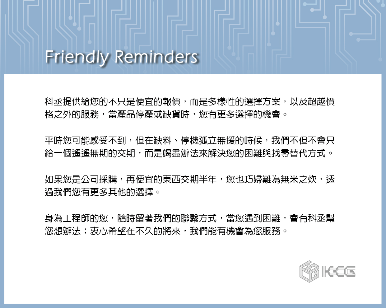 Friendly Reminders 貼心提醒